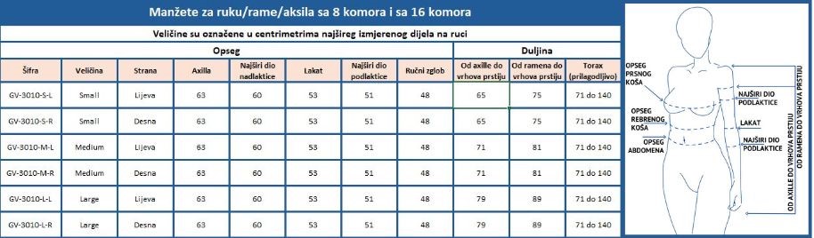 Manžeta za limfnu drenažu, ruka/rame/aksila