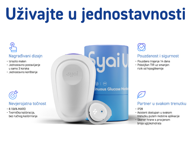 - Pametni dnevnik hrane sa skeniranjem obroka direktno u Syai App i automatskim izračunom ugljikohidrata (u gramima)